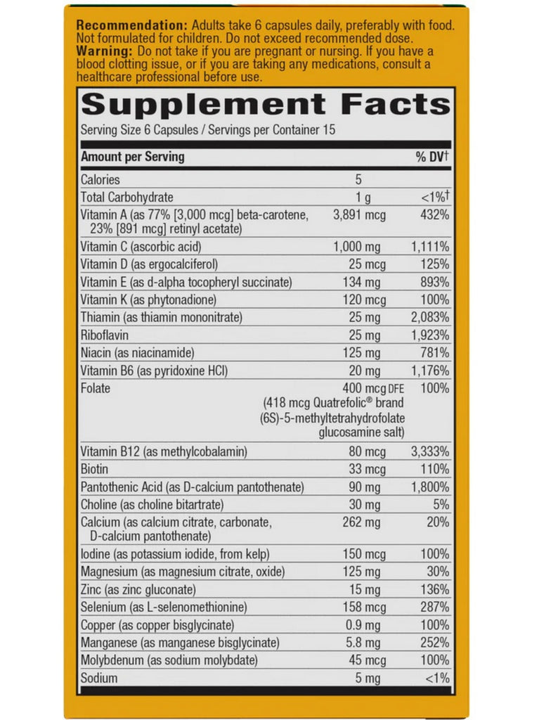 Adults take 6 capsules daily, preferably with food. Not formulated for children. Do not exceed recommended dose.