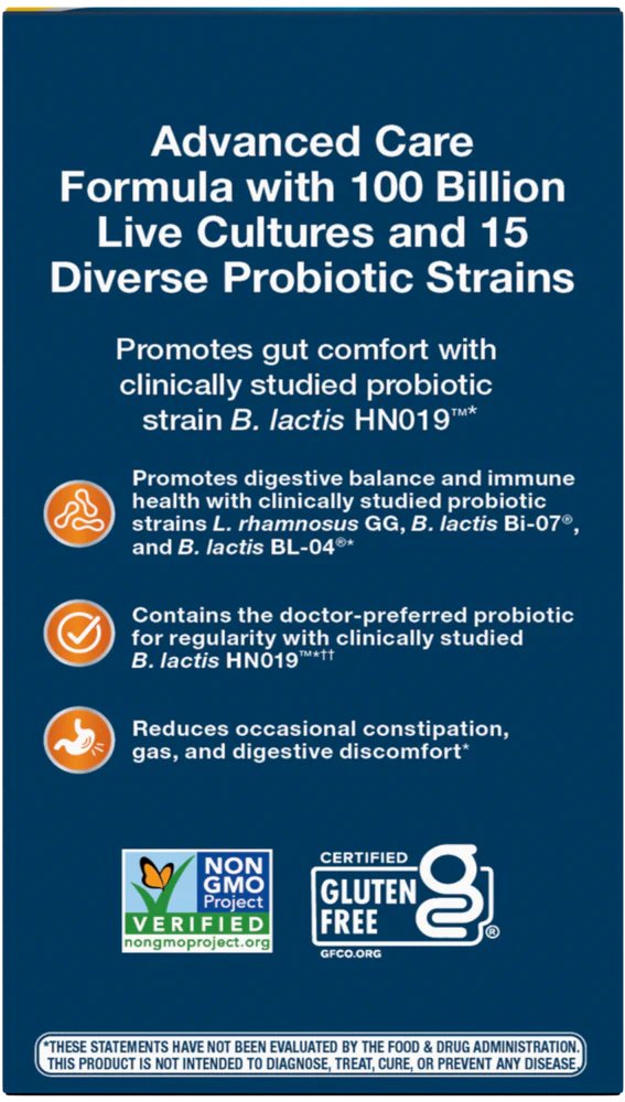 When it comes to your digestive health and balance, you may occasionally seek more advanced care. Fortify Optima Advanced Care 100 Billion is one of our most potent formulas, with 15 probiotic strains and 100 billion live probiotic cultures per capsule, guaranteed. This formula helps support digestive health during occasional episodes of digestive irregularity, a healthy immune response, and a healthy gut microbiome.