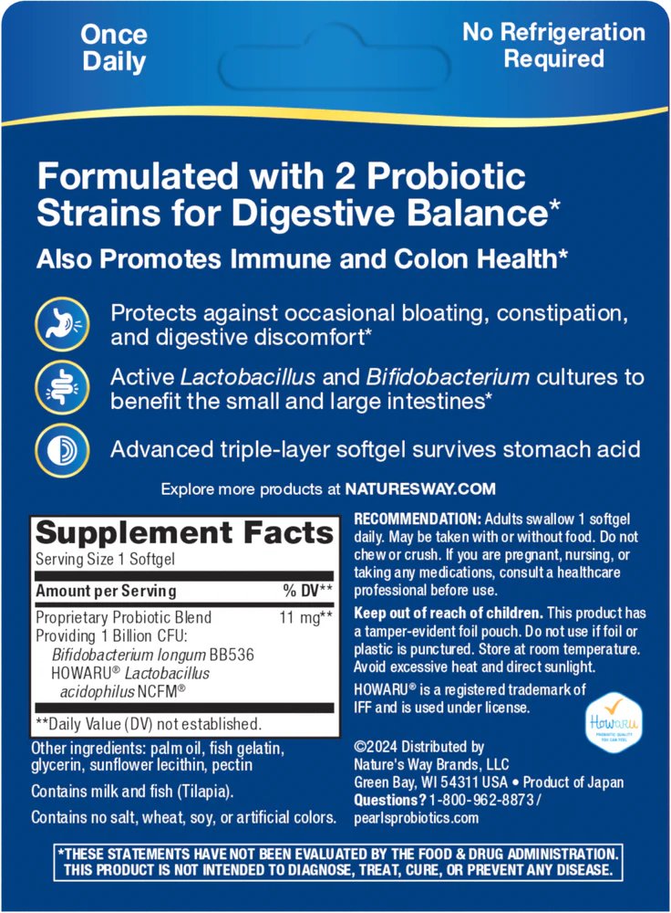 When it comes to your digestive health, keep it simple and make it a daily habit. Probiotic Pearls Acidophilus is formulated with L. acidophilus and B. longum strains to promote digestive balance, immune, and colon health, while protecting against occasional bloating, constipation, and digestive discomfort.