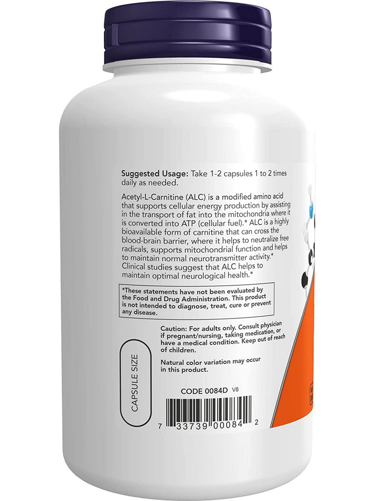 NOW Foods, Acetyl-L-Carnitine 500Mg, 200 veg capsules