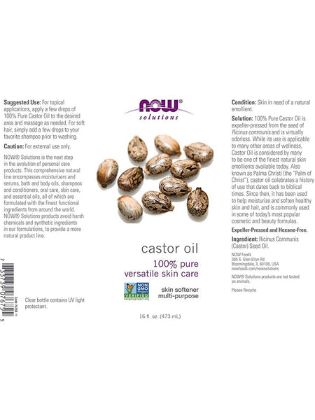 NOW Foods, Castor Oil, 100% Pure Versatile Skin Care, 16 fl oz