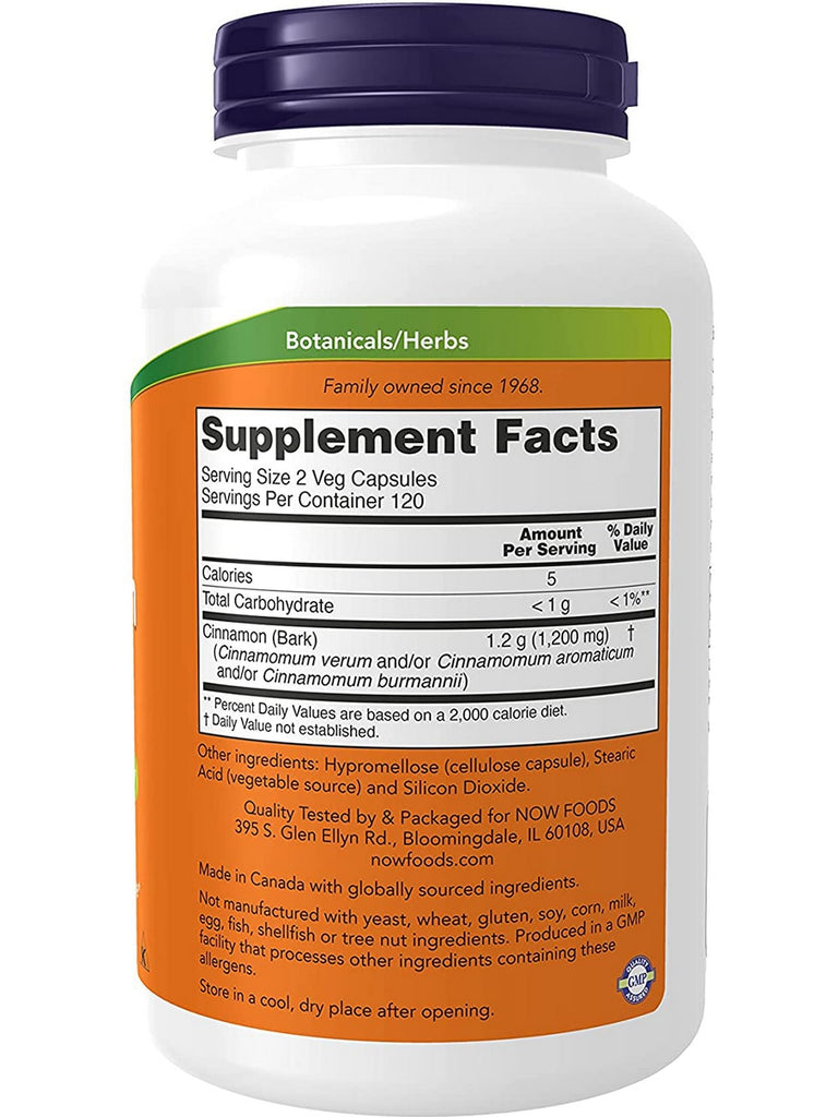 NOW Foods, Cinnamon Bark 600 mg, 240 veg capsules
