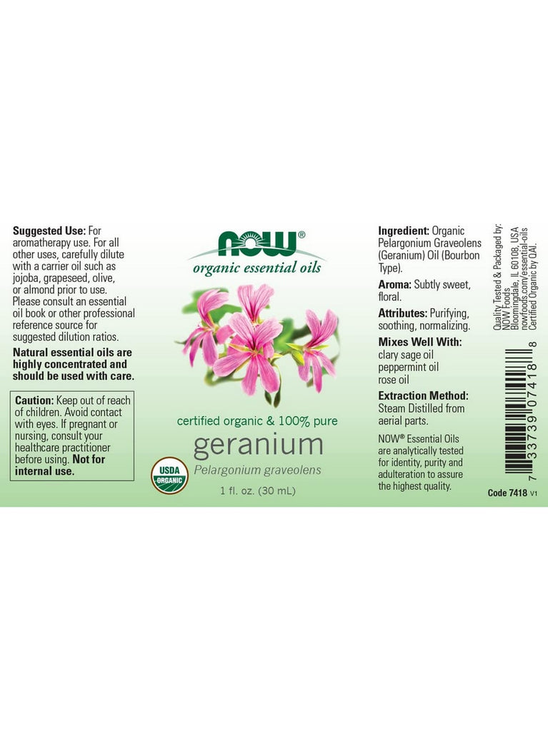 NOW Foods, Geranium Oil, Organic, 1 fl oz