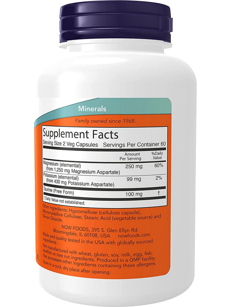 NOW Foods, Magnesium & Potassium Aspartate, 120 veg capsules