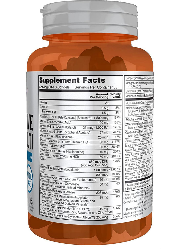 This daily multi-vitamin for active men features free-form amino acids, ZMA®, tribulus, MCT oil, herbal extracts, and more. Specially formulated with high-quality ingredients that aren’t usually found in an everyday multivitamin, NOW® Sports Men’s Active Sports Multi supports all levels of athletes. Competitive athletes who are regularly tested should check with their sanctioning body for the status of this supplement.