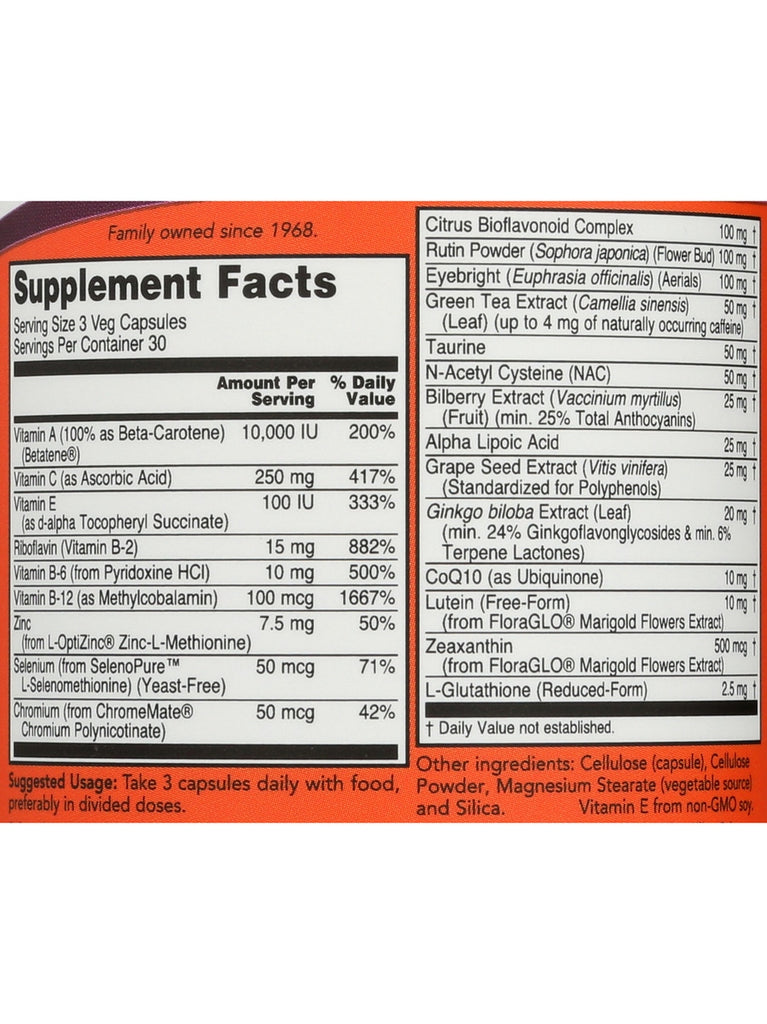 NOW® Clinical Strength Ocu Support™ has been formulated to offer comprehensive nutritional protection for the eyes. Each serving has 10 mg of available lutein, a critical pigment of the macula, lens, and other ocular tissues. Lutein's function in the eye is to neutralize free radicals produced by sunlight. NOW has also included green tea extract, alpha lipoic acid and grape seed extract in this formula to maximize its free radical scavenging potential.