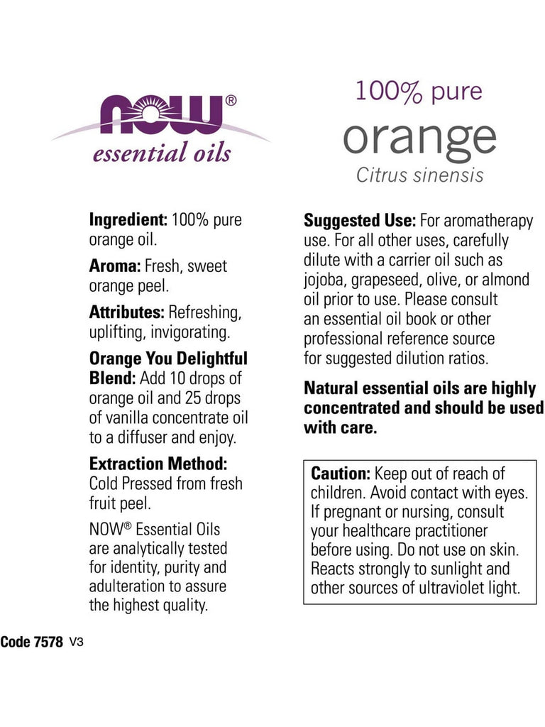 NOW Foods, Orange Oil, 100% Pure, 4 fl oz