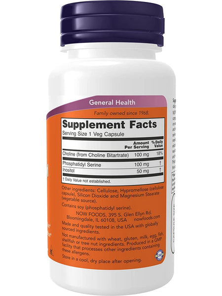 NOW® Phosphatidyl Serine is a phospholipid compound derived from soy lecithin that plays an essential role in cell membrane composition and intercellular communication. Phosphatidyl serine is a major structural component of neural membranes where it assists in the conduction of electrical impulses and facilitates the activity of neurotransmitters involved in learning, memory, and mood. These properties make NOW® Phosphatidyl Serine an ideal supplement for the support of cognitive function.