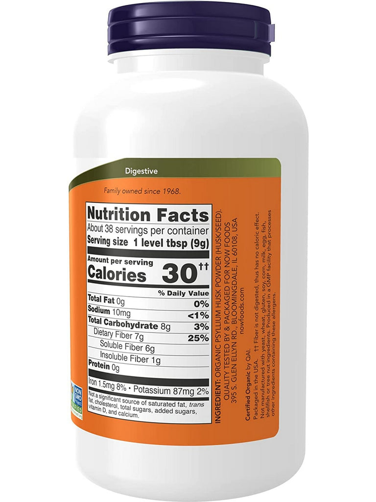 NOW Foods, Psyllium Husk Powder, Organic, 12 oz
