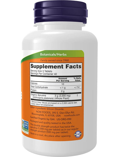 NOW Foods, Spirulina Double Strength, 1000 mg Organic, 120 tablets