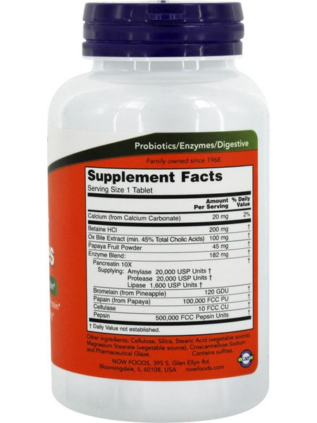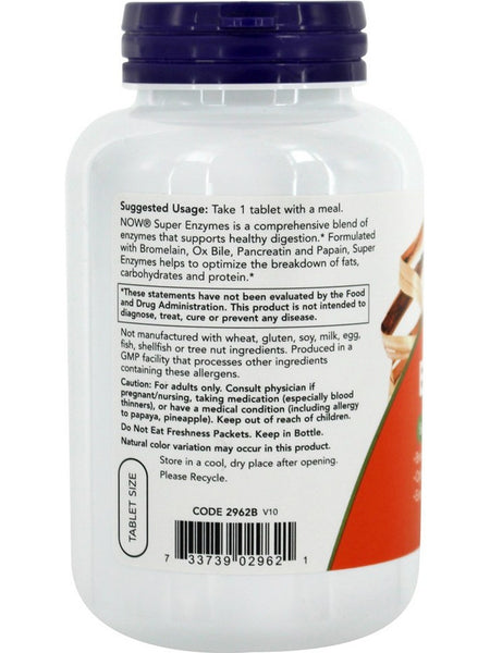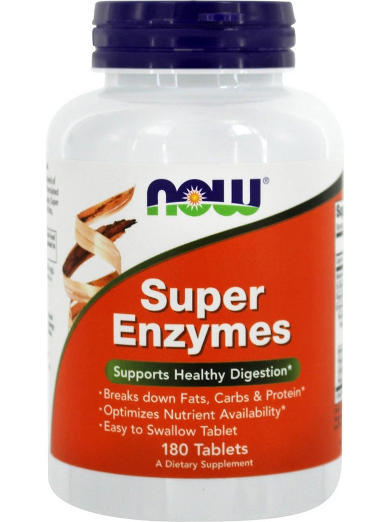 NOW® Super Enzymes is a comprehensive blend of enzymes that supports healthy digestion. Formulated with Bromelain, Ox Bile, Pancreatin and Papain, Super Enzymes helps to optimize the breakdown of fats, carbohydrates and protein.