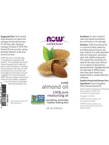 NOW Foods, Sweet Almond Oil, 100% Pure Moisturizing Oil, 4 fl oz