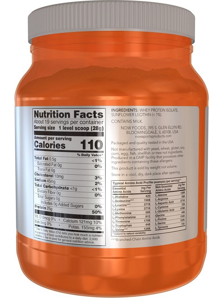 NOW Foods, Whey Protein Isolate, Unflavored Powder, 1.2 lbs
