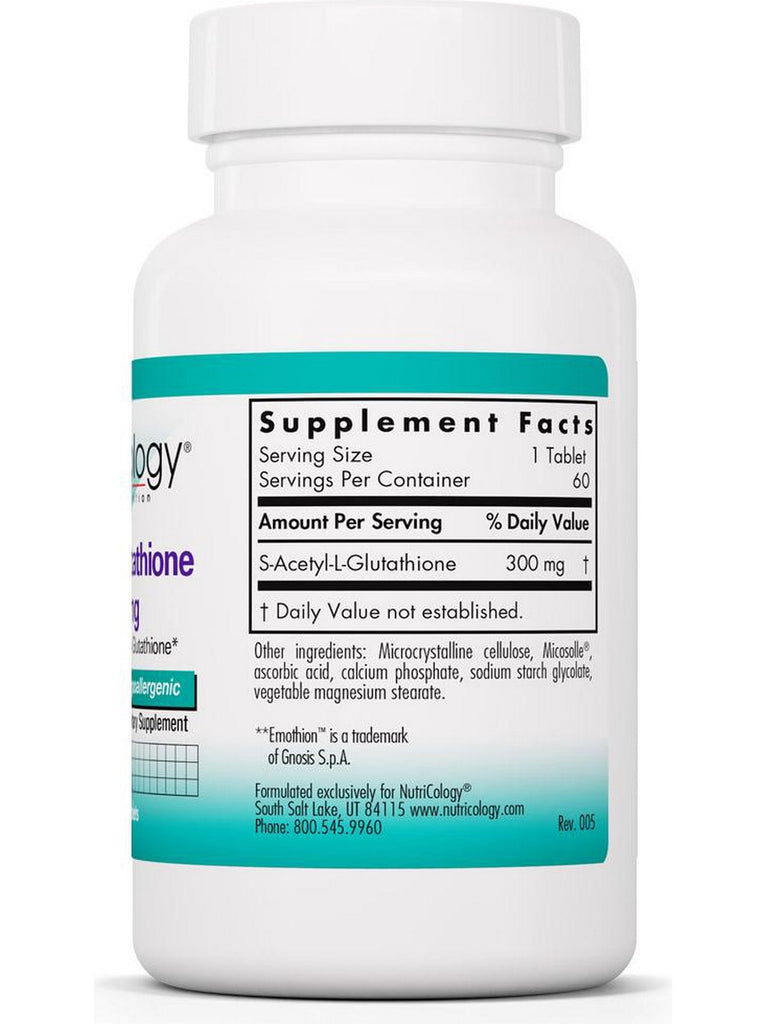 NutriCology, Acetyl-Glutathione 300 mg, Well Absorbed Oral Glutathione, 60 Scored Tablets