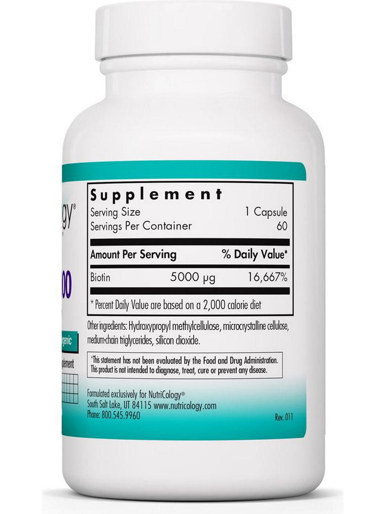 NutriCology, Biotin 5000 High Dose Biotin, 60 Vegetarian Capsules