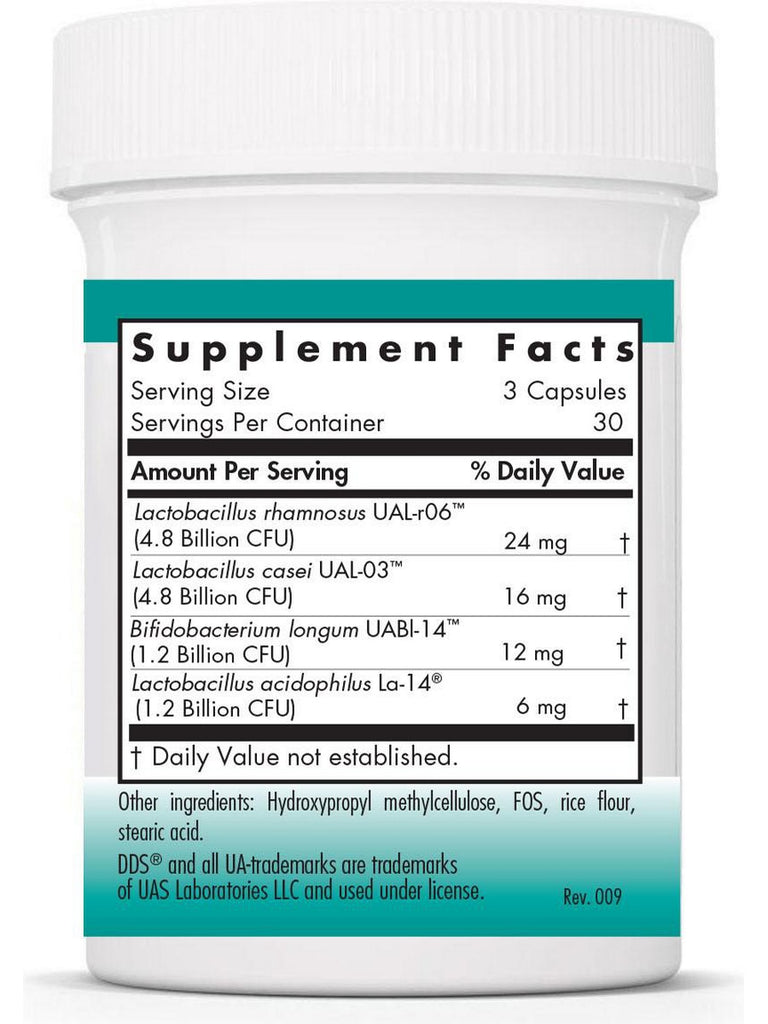 Combination of four beneficial lyophilized (freeze dried) probiotic bacteria of Lactobacillus acidophilus, L. rhamnosus, L. casei, and Bifidobacterium longum. Non-Dairy and Gluten-Free.