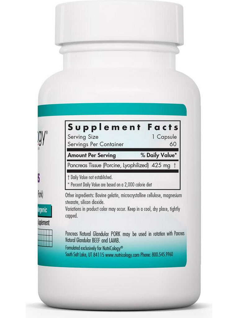 NutriCology, Pancreas Natural Glandular (Pork), 60 capsules