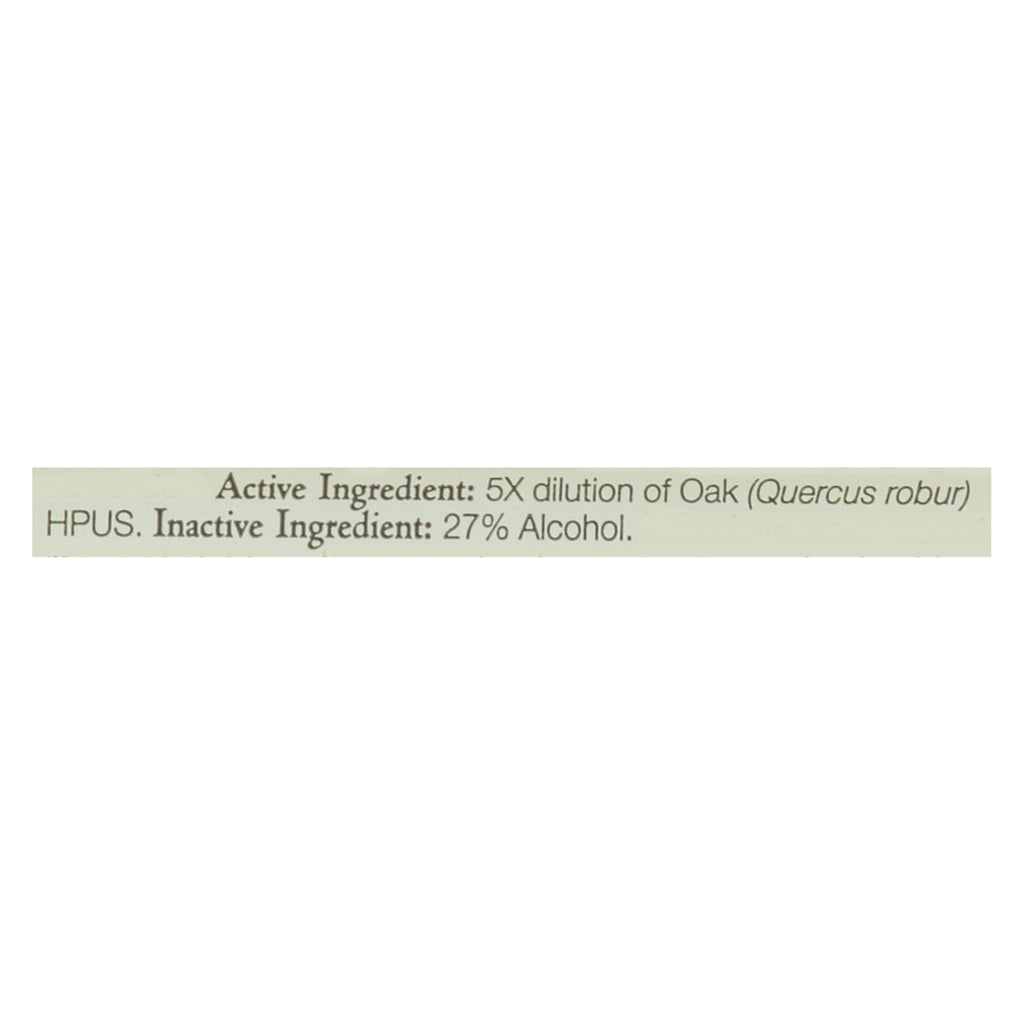 ACTIVE INGREDIENTS: 5x dilution of Quercus robur HPUS. INACTIVE INGREDIENTS: 27% Alcohol.