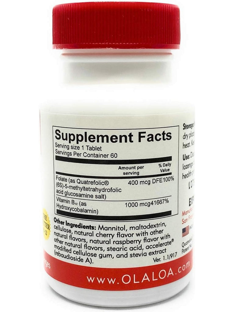 Ola Loa, Vegan B-12 Hydroxycobalamin with Folic Acid 1000mcg Sublingual Cherry, 60 Lozenges