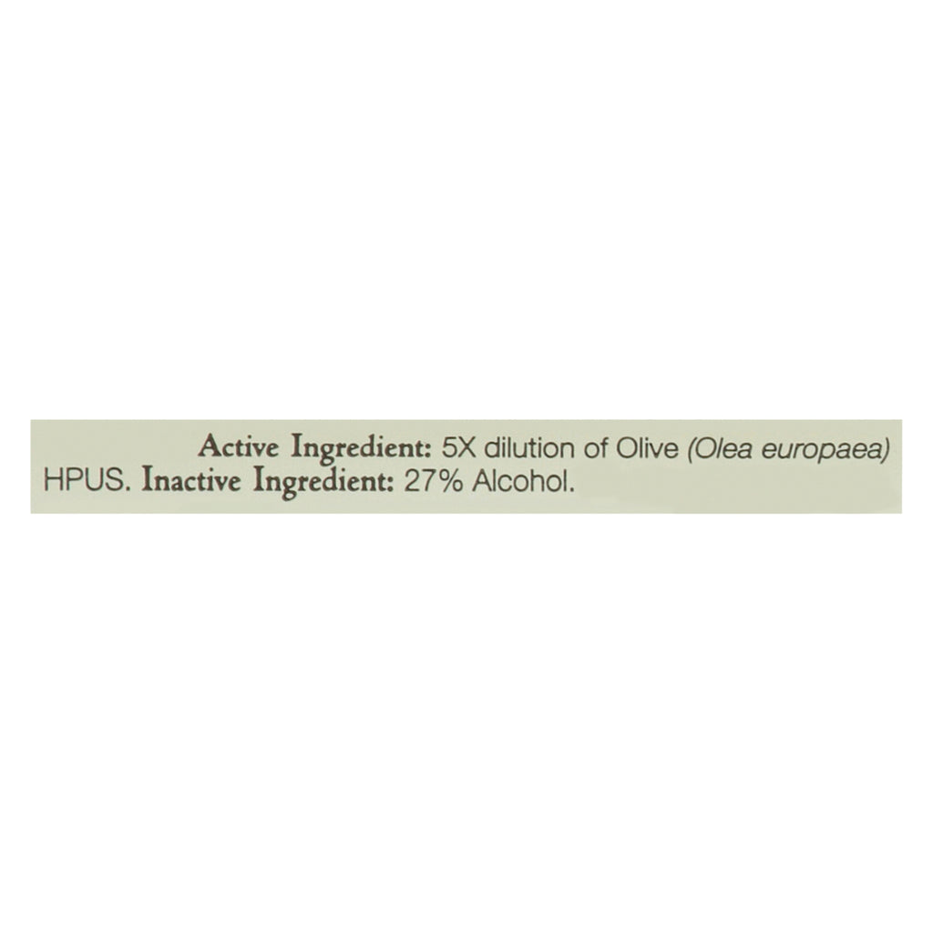 ACTIVE INGREDIENTS: 5x dilution of Olea europaea HPUS. INACTIVE INGREDIENTS: 27% Alcohol.