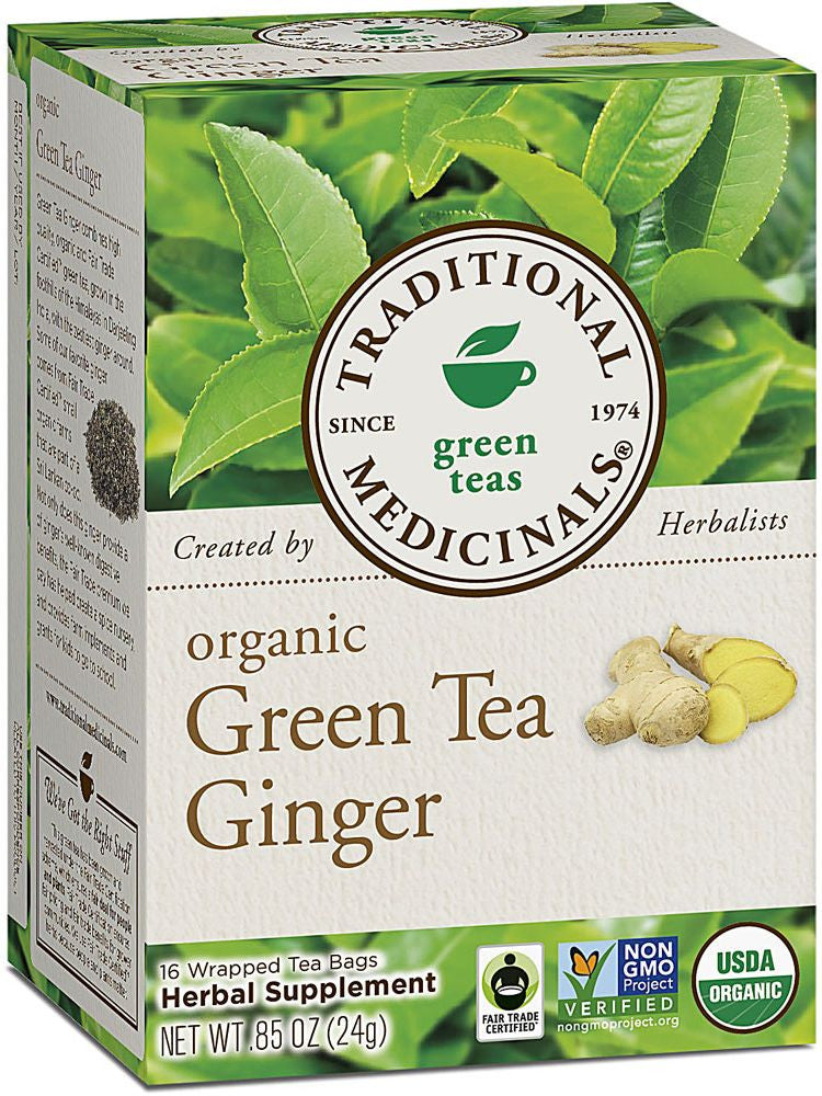 Traditional Medicinals Organic Green Tea Ginger is a delicious formula that delivers all of the benefits of green tea. The fresh taste is complemented by ginger for extra wellness. It's a warm, spicy tea that promotes healthy digestion with a pleasantly pungent and mildly tannic taste.