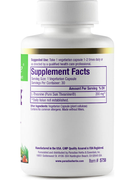 Paradise Herbs, Sun Theanine, 200mg, 30 vegetarian capsules
