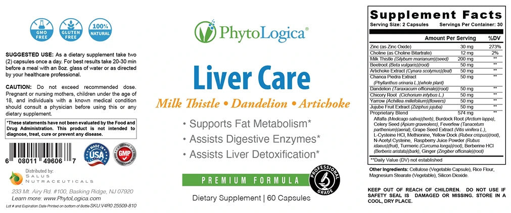 PhytoLogica, Liver Care, Milk Thistle, Dandelion, Artichoke, 60 Capsules