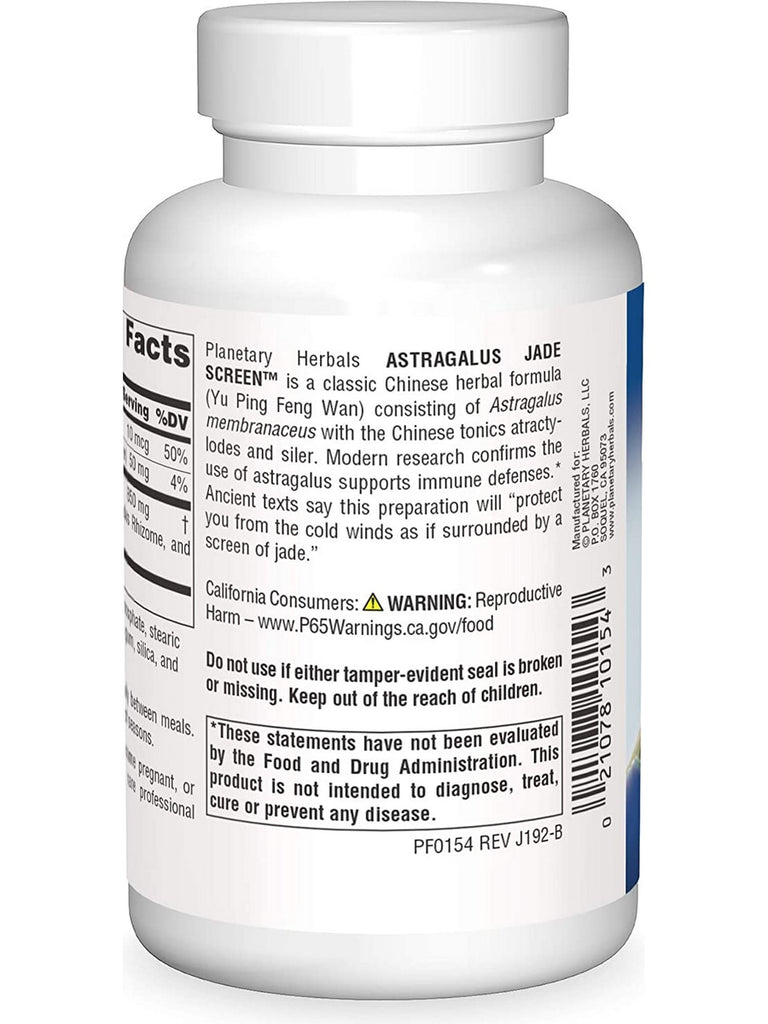 Planetary Herbals ASTRAGALUS JADE SCREEN™ is a classic Chinese herbal formula (Yu Ping Feng Wan) for support of a healthy immune system. It is especially good to use when going into the winter season or for children going back to school.