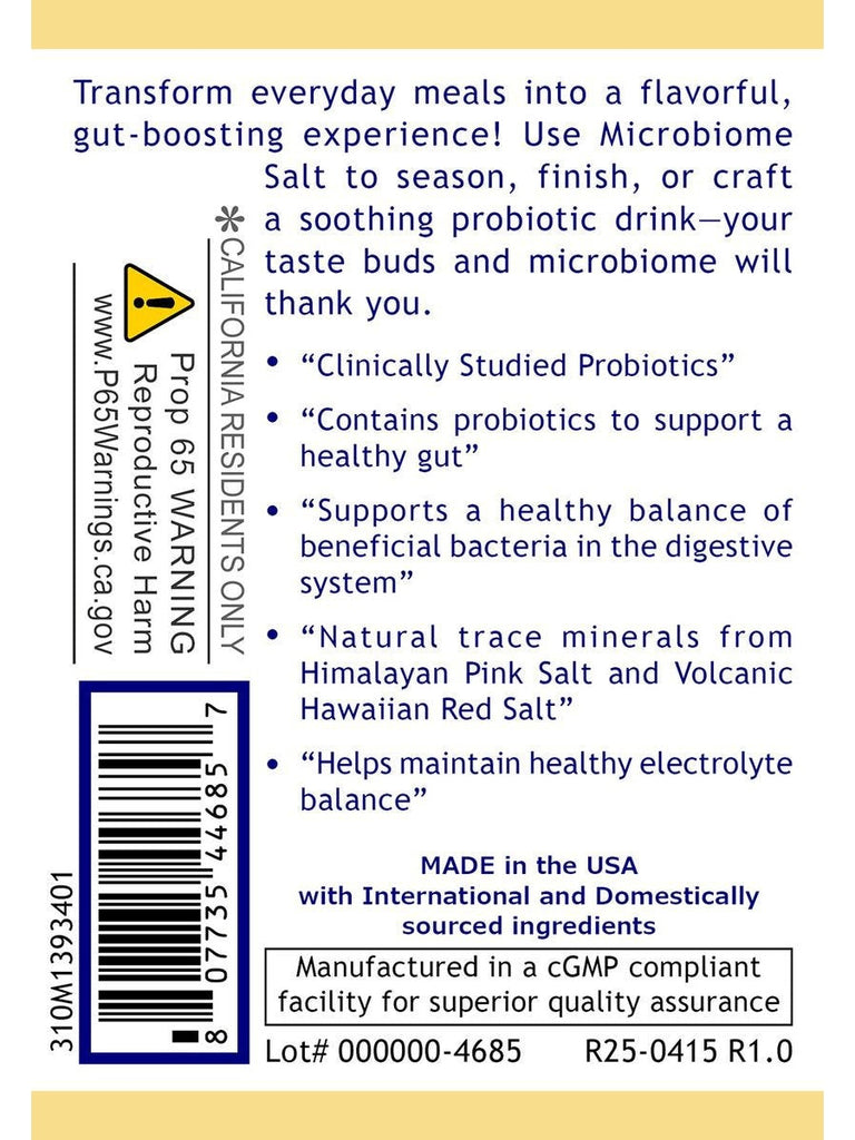 Transform everyday meals into a flavorful gut-boosting experience! Use Microbiome Salt to season, finish, or craft, a soothing probiotic drink-- your taste buds and microbiome will thank you.