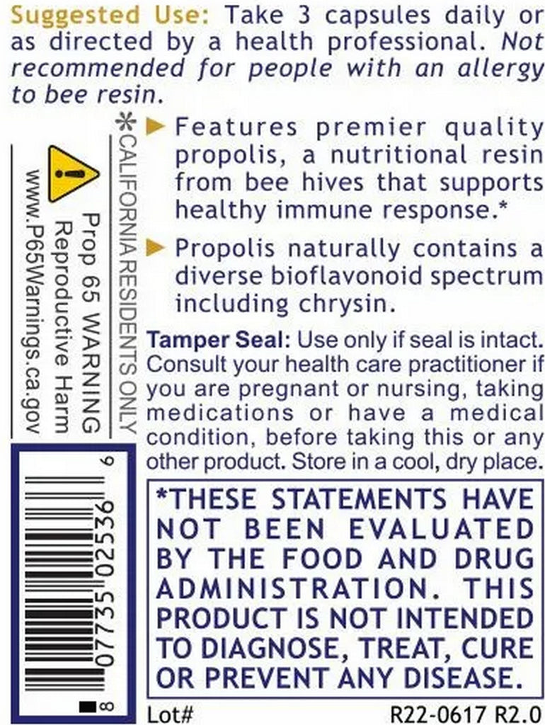 Take 3 capsules daily or as recomended by a health professional. Not recommended for people with an allergy to bee resin.