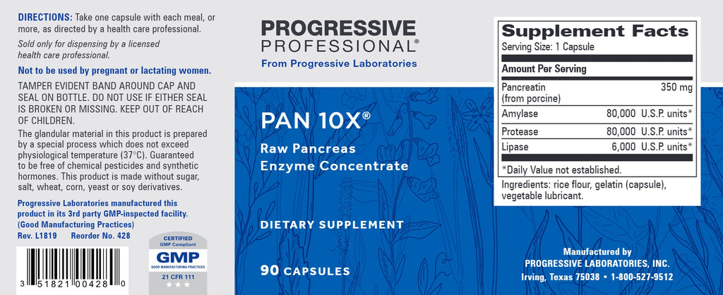 This product is a highly potent source of pancreatic enzymes. Each capsule is equivalent to two Pan-5X. This is one of the most potent pancreatic enzyme product on the market.