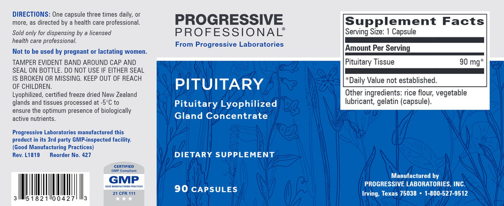 Lyophilized, certified, freeze dried New Zealand pituitary gland concentrate processed at -5 degrees C to ensure the optimum presence of biologically active nutrients. The pituitary gland is the "master" endocrine gland. Its secretions regulate the entire endocrine system.