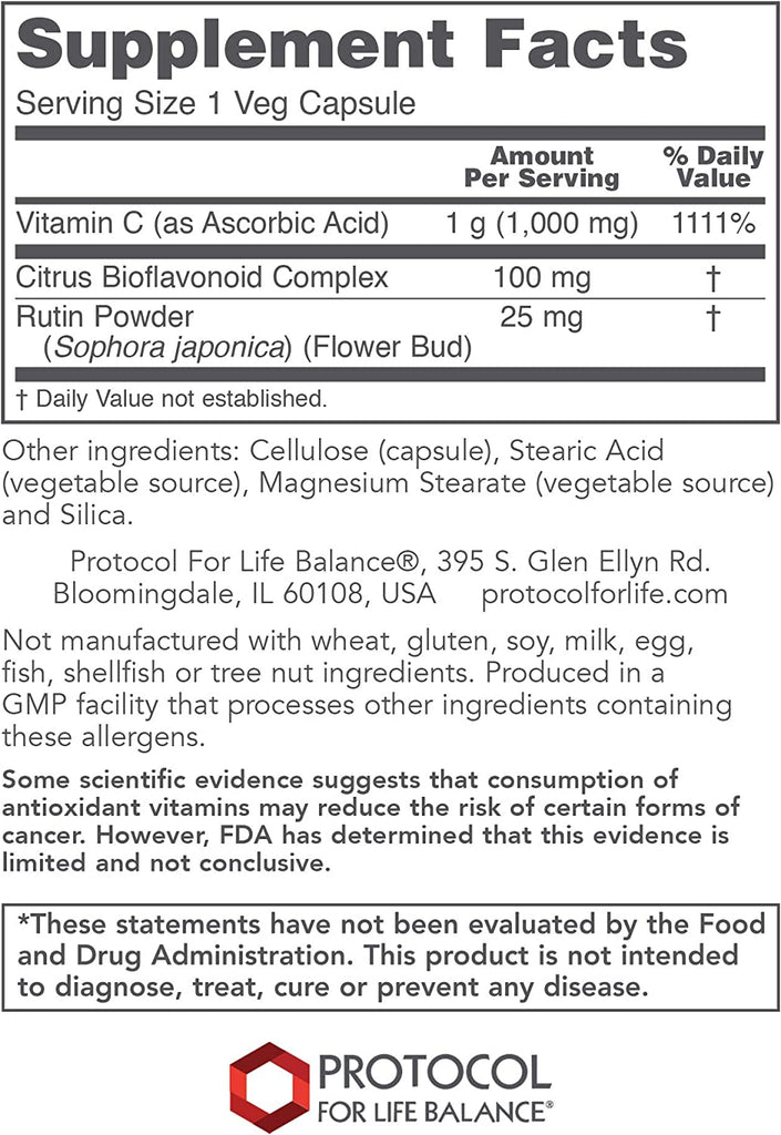 Protocol For Life Balance, C-1000 Caps with Bioflavonoids & Rutin, 120 Veg Capsules
