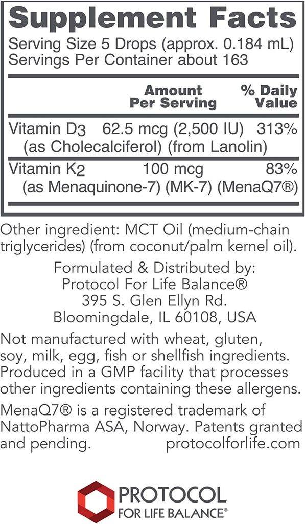 Protocol For Life Balance, Liquid D3 & MK-7, 1 fl oz (30 mL)