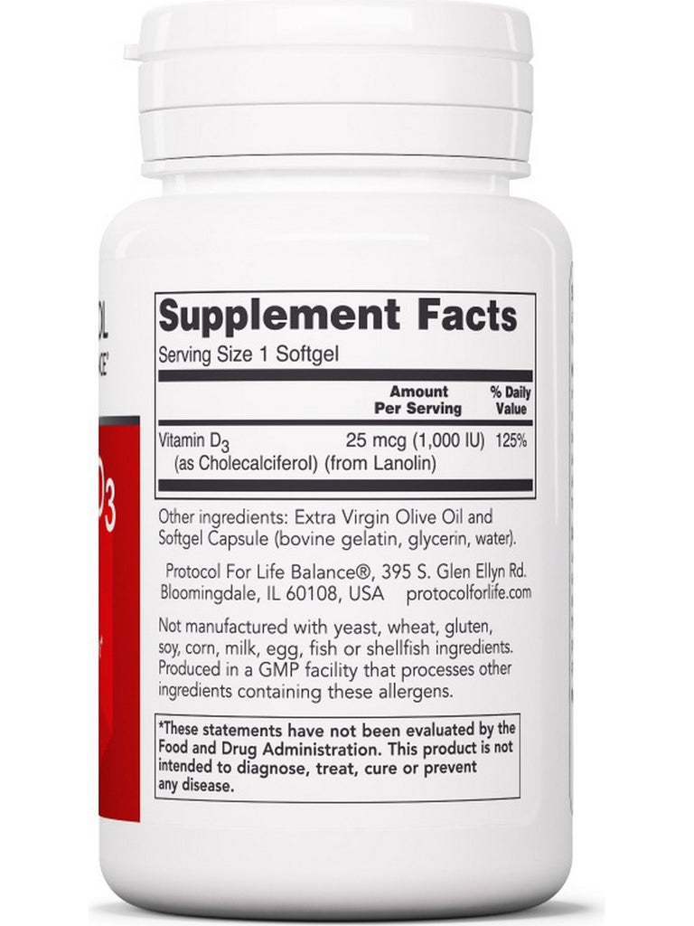 Protocol For Life Balance, Vitamin D3, 1,000 IU, 120 Softgels