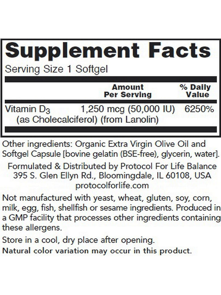 Protocol For Life Balance, Vitamin D3, Clinical Potency, 50,000 IU, 12 Softgels