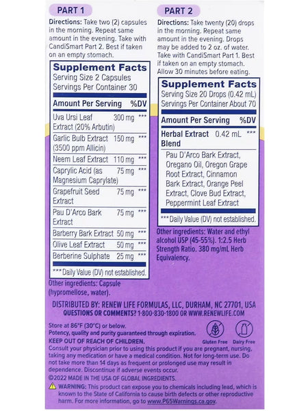 RenewLife, CandiSmart Cleanse, 1 Kit (60 Vegetarian Capsules and 1 fl oz Tincture)