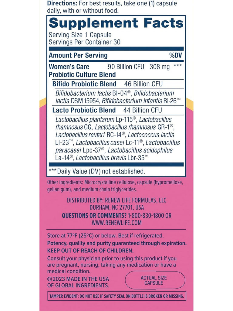 RenewLife, Women's Complete Ultimate Flora Probiotic, 90 Billion CFU, 30 Delayed Release Vegan Capsules