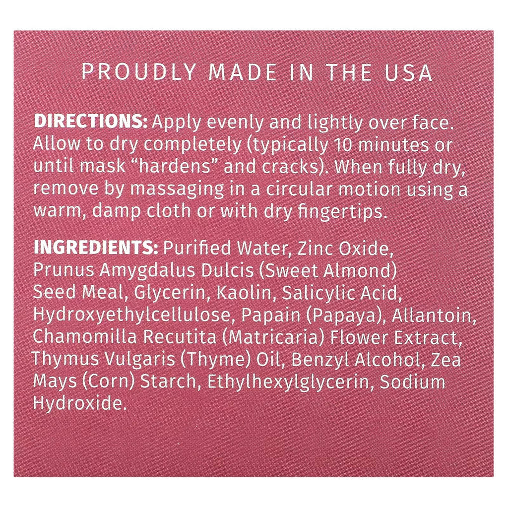 Apply evenly and lightly over face. Allow to dry completely (typically 10 minutes or until mask “hardens” and cracks). When fully dry, remove by massaging in a circular motion using a warm, damp cloth or with dry fingertips.