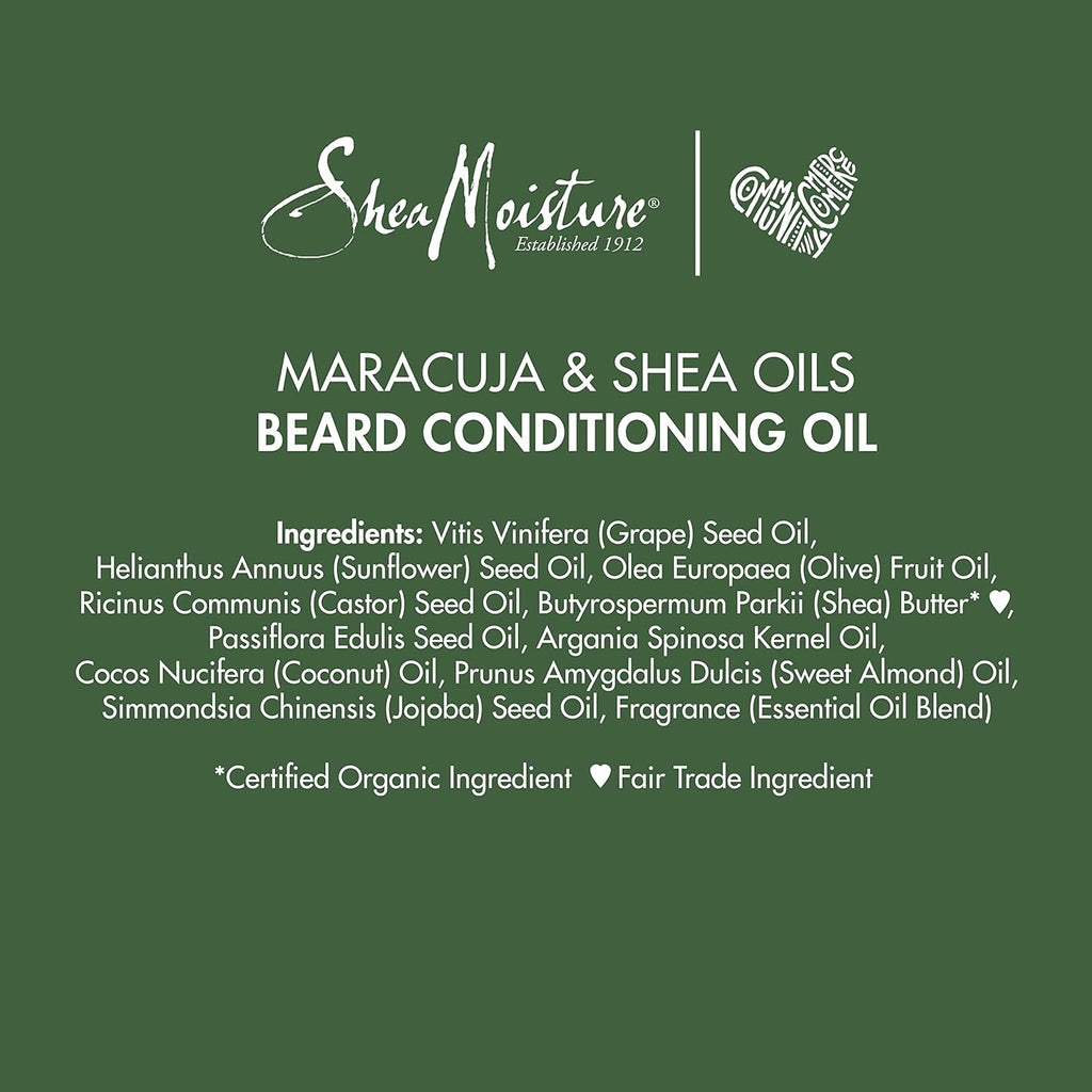 SheaMoisture Maracuja Oil & Shea Butter Beard Conditioning Oil absorbs quickly to soften and condition full beards, while restoring moisture to dry facial skin. This beard oil for men keeps hair soft and smells like the outdoors. SheaMoisture beard oil is made with Fair Trade shea butter and it is formulated with no sulfates, no parabens, no phthalates, no mineral oil or petrolatum. SheaMoisture beard oil for men is created to soften and moisturize thick coarse hair without leaving residue or a greasy film on your beard. Add this beard oil to your beard care regimen to help keep skin moisturized and free from dryness.