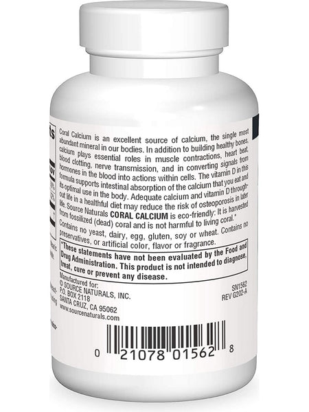 Coral Calcium is an excellent source of calcium, the single most abundant mineral in our bodies. In addition to building healthy bones, calcium plays essential roles in muscle contractions, heartbeat, blood clotting, nerve transmission, and in converting signals from hormones in the blood into actions within cells. The vitamin D in this formula supports intestinal absorption of the calcium that you eat and its optimal use in the body. Adequate calcium and vitamin D throughout life in a healthful diet may reduce the risk of osteoporosis in later life. Source Naturals Coral Calcium is eco-friendly: It is harvested from fossilized (dead) coral and is not harmful to living coral.