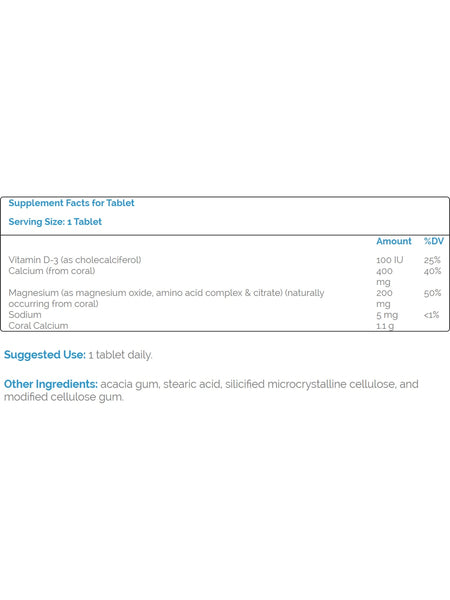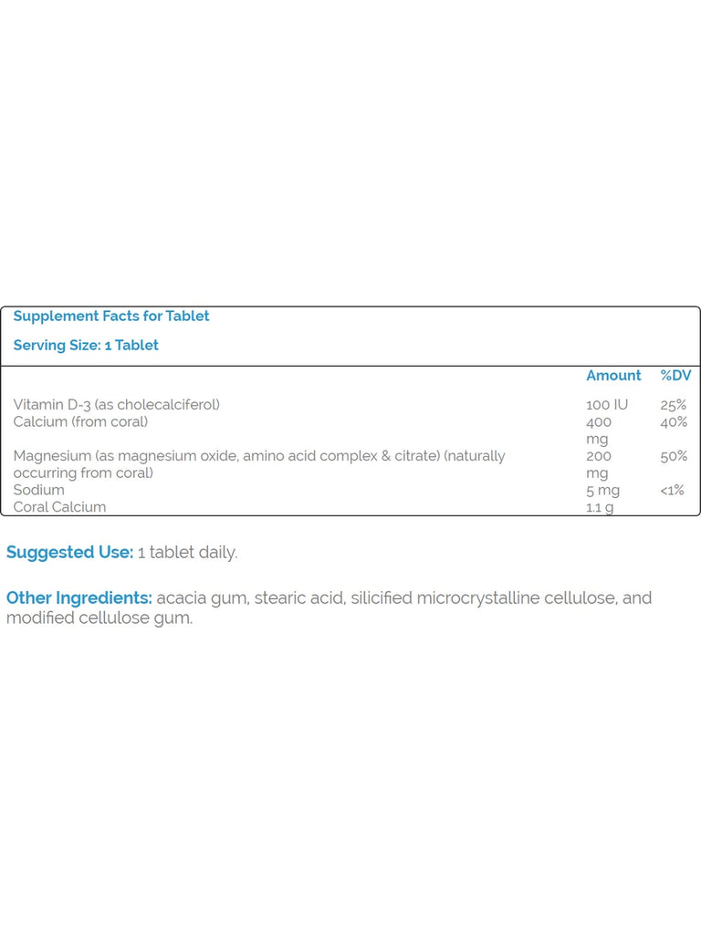 Source Naturals Coral Calcium/Magnesium is an excellent source of these two alkaline minerals in an optimal 2:1 ratio. In addition to building healthy bones, calcium plays essential roles in muscle contractions, heartbeat, blood clotting, nerve transmission, and in converting signals from hormones in the blood into actions within cells. Magnesium is involved in over 300 vital cellular processes, and helps to regulate the action of calcium in muscle function and heart health. The vitamin D in this formula supports intestinal absorption of calcium and its optimal use in the body. Source Naturals Coral Calcium/Magnesium is ecofriendly: It is harvested from fossilized (dead) coral and is not harmful to living coral.