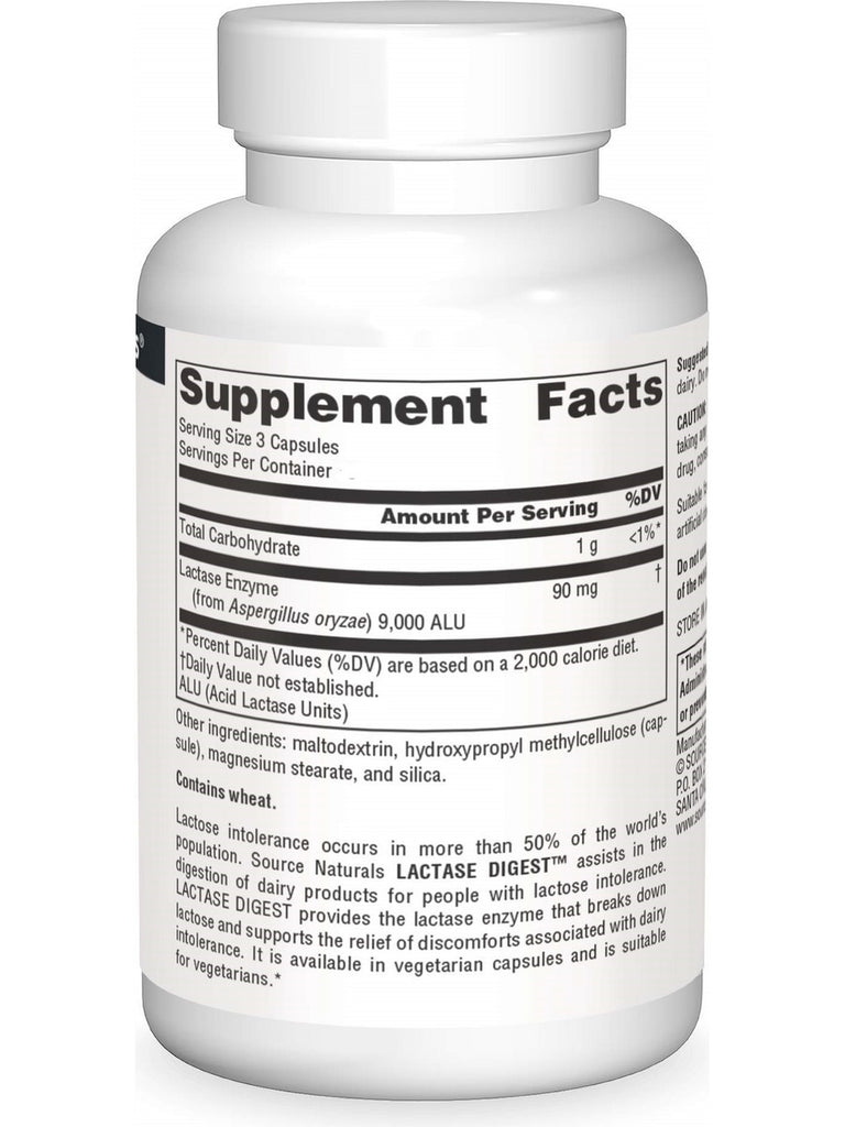 Lactose intolerance occurs in more than 50% of the world’s population. Source Naturals Lactase Digest™ assists in the digestion of dairy products for people with lactose intolerance. Lactase Digest provides the lactase enzyme that breaks down lactose and supports the relief of discomforts associated with dairy intolerance. It is available in vegetarian capsules and is suitable for vegetarians.