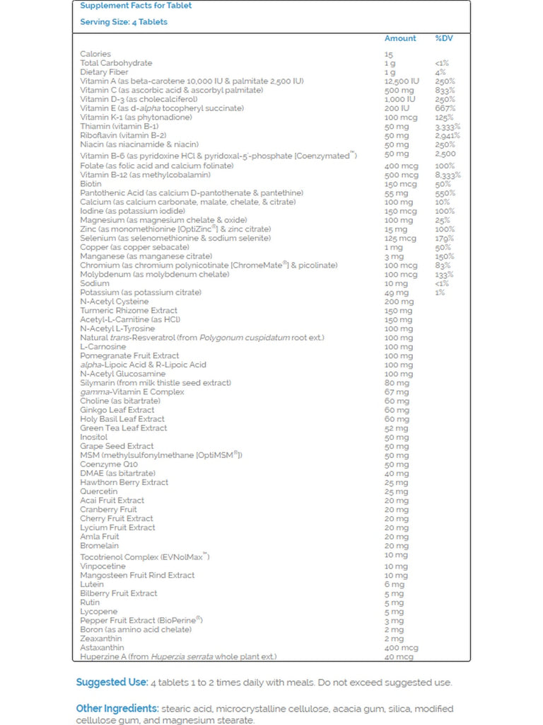Life Force® Healthy Aging™ helps promote lifelong health in four ways: It addresses oxidative stress and cellular energy loss, while supporting healthy metabolic inflammation response and normal liver detoxification.1 It features 50 ingredients from our award-winning Life Force® Multiple, plus targeted nutrients for eye, brain, bone, and heart health, all especially important to healthy aging.
