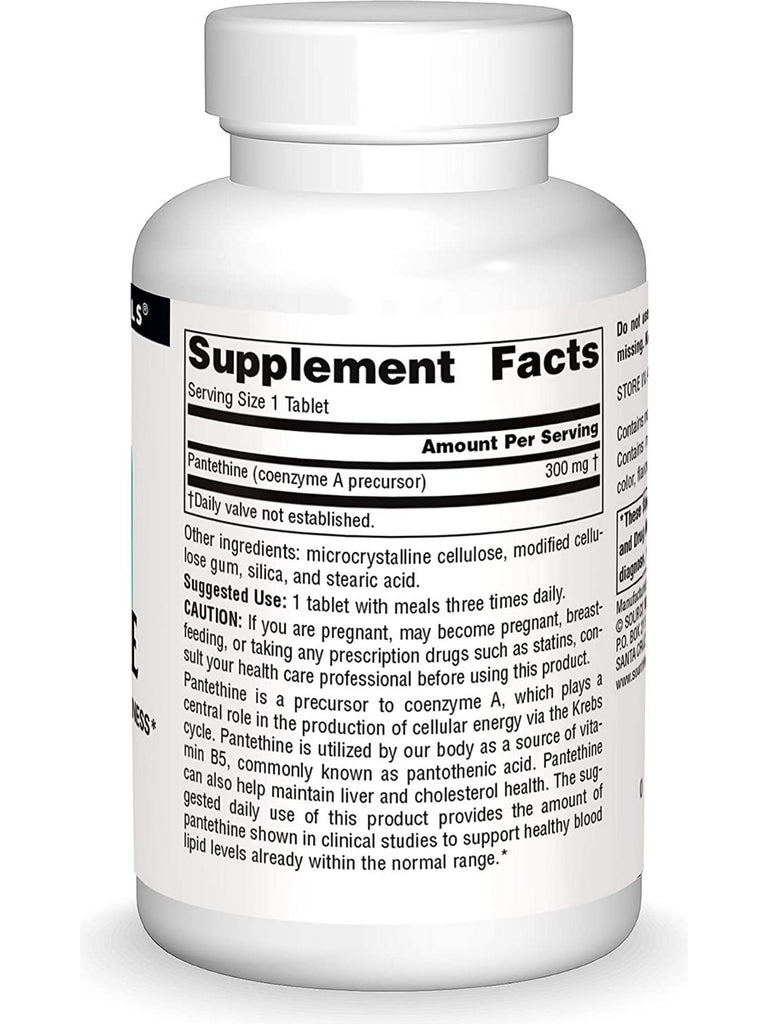 Pantethine is a precursor to coenzyme A, which plays a central role in the production of cellular energy via the Krebs cycle. Pantethine is utilized by our body as a source of vitamin B5, commonly known as pantothenic acid. Pantethine can also help maintain liver and cholesterol health. The suggested daily use of this product provides the amount of pantethine shown in clinical studies to support healthy blood lipid levels already within the normal range.
