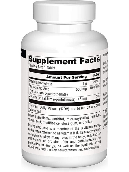 Source Naturals, Pantothenic Acid Vitamin B-5 500 mg, 100 tablets