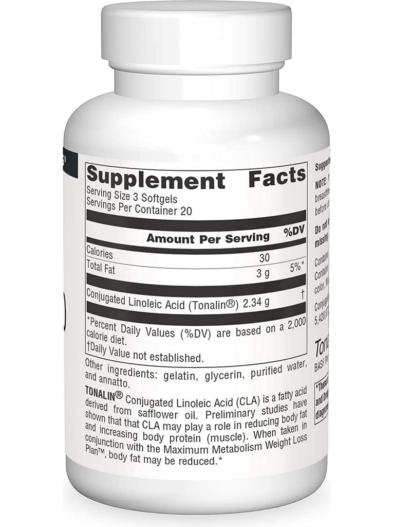 TONALIN® Conjugated Linoleic Acid (CLA) is a fatty acid derived from safflower oil. Preliminary studies have shown that that CLA may play a role in reducing body fat and increasing body protein (muscle). When taken in conjunction with the Maximum Metabolism Weight Loss Plan™, body fat may be reduced.