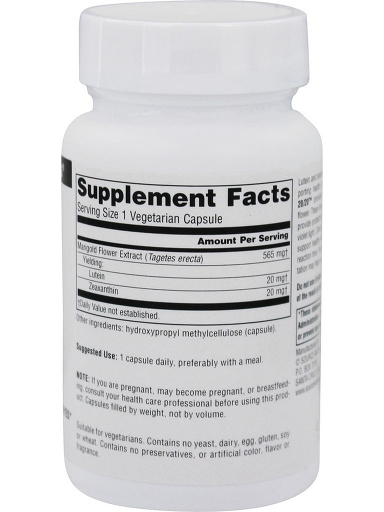 Lutein and zeaxanthin help shield the eye’s retina from damage by supporting healthy macular pigment density. Source Naturals Zea-Tein 20/20™ provides lutein and zeaxanthin, sourced from the marigold flower. These important carotenoid pigments aggregate in the retina and provide protection from the damaging effects of free radicals and ultraviolet light. Clinical studies suggest that this lutein-zeaxanthin dosage can support healthy macular pigment density, visual processing speed, and reaction time. Preliminary evidence also indicates that lutein supplementation may help support healthy cognitive performance.