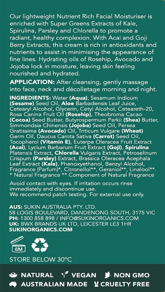 Sukin, Super Greens Nutrient Rich Facial Moisturiser, 4.23 fl oz