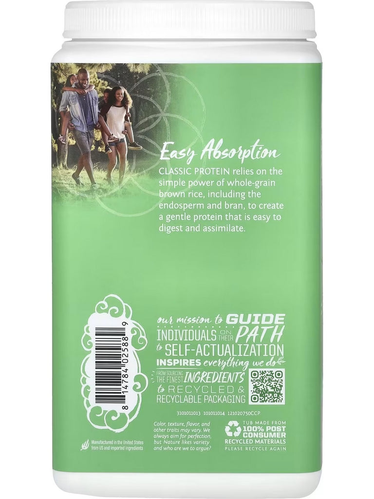 Classic Protein relies on the simple power of whole-grain brown rice, including the endosperm and bran, to create a gentle protein that still stacks up to the competition in the gym where it matters most. Contains essential Amino Acids and delivers 18g-20g Organic Plant-Based Protein per serving.